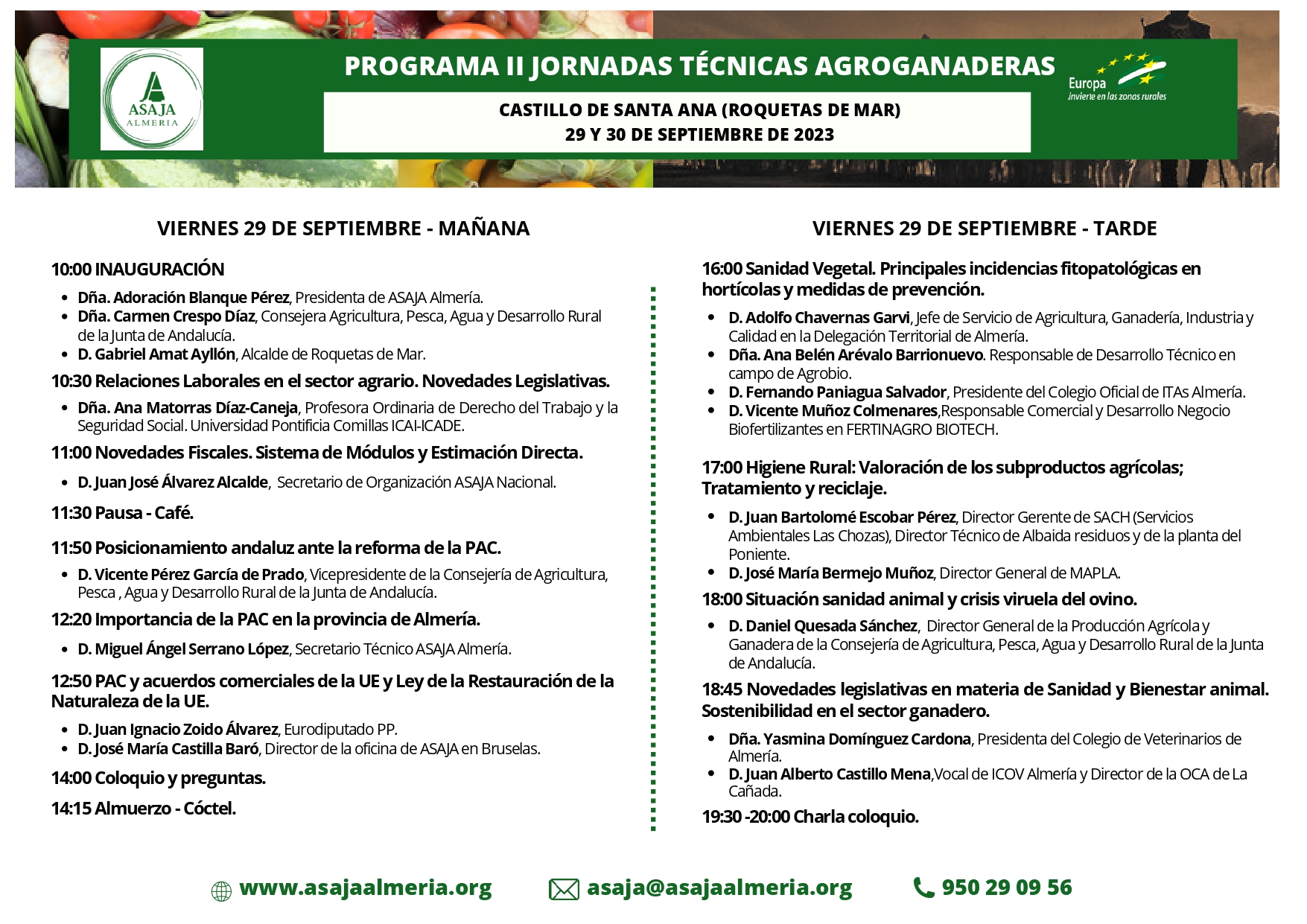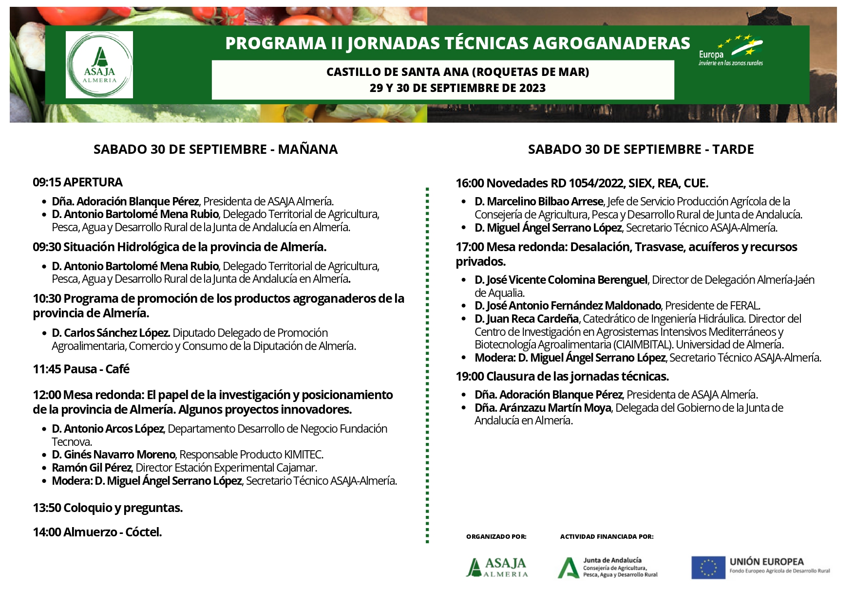 ¿TE VIENES? Inscríbete en el siguiente enlace: https://docs.google.com/forms/d/e/1FAIpQLSfRlA4QzeNqkkE-HZZHuLvSoKkXO4Qmuus9MsRX8SoypTOXLA/viewform?usp=sf_link Publicaciones relacionadas Ultima horaBoletín 17 abril, 2026Semana 16 | abril 2026 – AGROCULTURApor ASAJA GeneralAGRICULTURAUltima horaCOMUNICADOS DE PRENSA 17 abril, 2026ASAJA Almería reclama una respuesta urgente del Gobierno a la petición de rebaja fiscal presentada a comienzos de añopor ASAJA GeneralCOMUNICADOS DE PRENSAUltima hora 15 abril, 2026EXPOLEVANTE 2026, con todo listo para su iniciopor ASAJA YA PUEDES INSCRIBIRTE EN LAS JORNADAS TÉCNICAS DE ASAJA ALMERÍA ASAJA-ALMERÍA DA VOZ AL CAMPO EN SUS II JORNADAS AGROGANADERAS