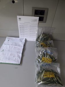 Una vez en el laboratorio de Olivarum, las muestras se registraron y, antes de proceder al análisis, se lavaron con una solución de Tritón X100 a una concentración del 0,05% con fin de eliminar los restos de tierra y los residuos de los tratamientos propios del olivar, que podrían interferir en los análisis. A continuación se secaron,  trituraron y a cada una se le analizaron los siguientes parámetros: nitrógeno, fósforo, potasio, calcio, magnesio, sodio, manganeso, cobre, zinc y boro y se calcinaron.