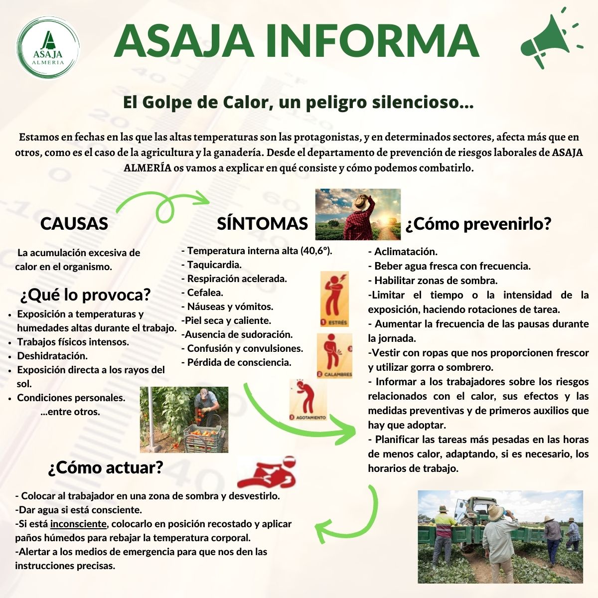Recuerda que en verano debido a las altas temperaturas es preciso prestar atención a uno de los principales riesgos que nos genera el calor que son los temidos golpes de calor, insolaciones etc. para evitarlos se deben tomar medidas por lo que aconsejamos sigan las recomendaciones de nuestro departamento de Prevención de Riesgos Laborales.